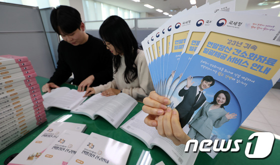 지난해 1월 종로구 종로세무서에서 직원들이 연말정산 관련 안내 책자를 보고 있는 모습. 2024.1.15/뉴스1 News1 박지혜 기자올해 연말정산부…