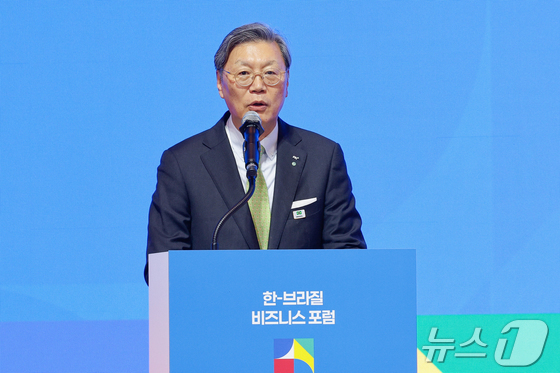 김창범 한국경제인협회 부회장이 23일 오후 서울 중구 롯데호텔에서 열린 한-브라질 비지니스 포럼 개회식에 참석해 개회사를 하고 있다. 2026.2.23 뉴스…